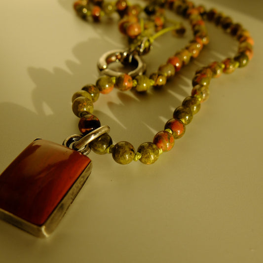 Camile Red Jasper Silver Pendant with Unakite bead strand