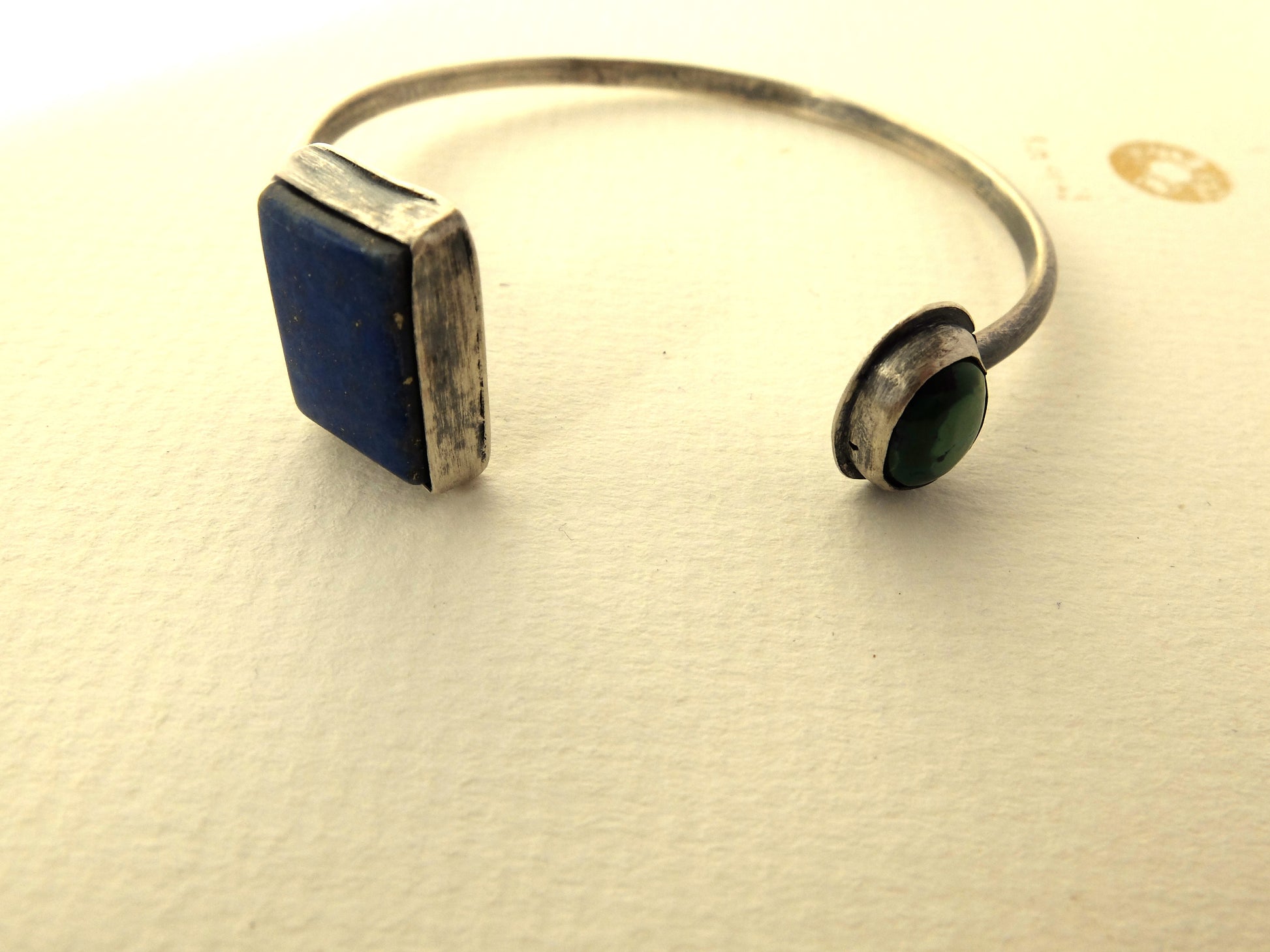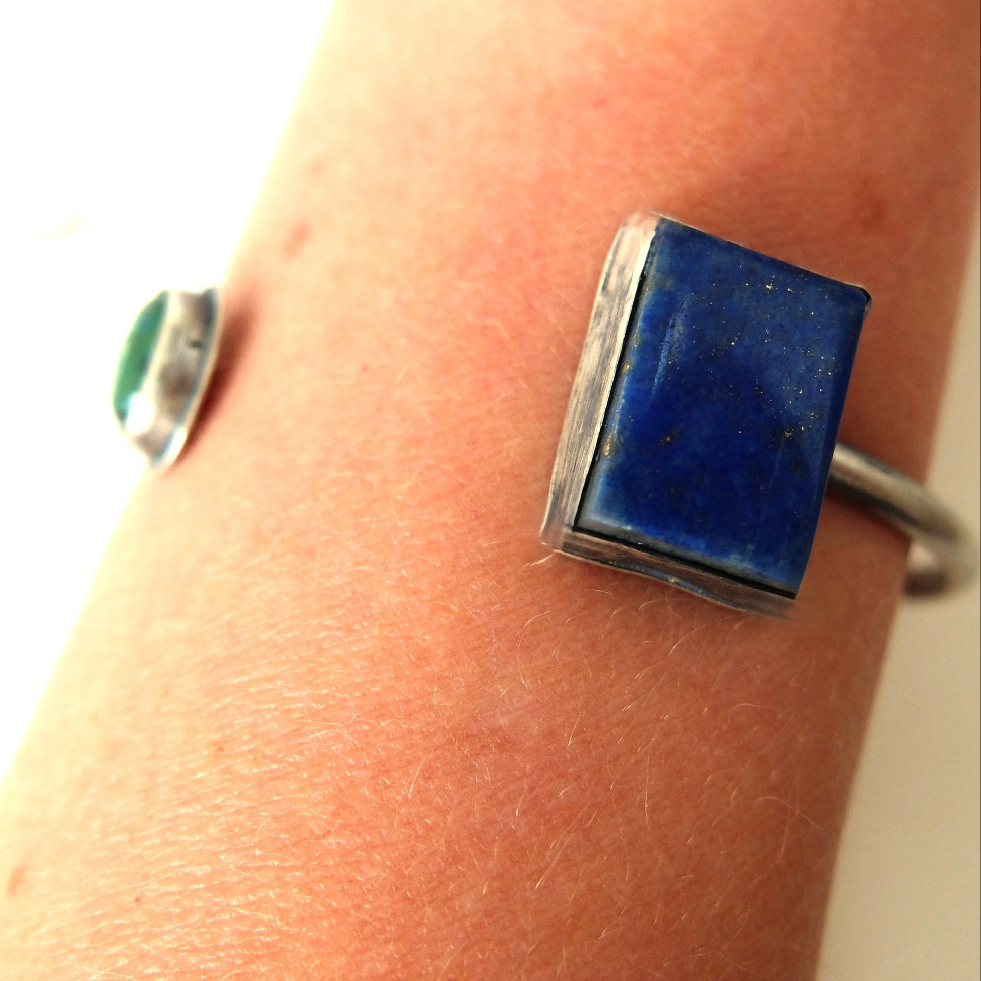 Agnes Lapis and Turquoise Torque in Sterling Silver inspired by Egyptian Queens; .25 inches