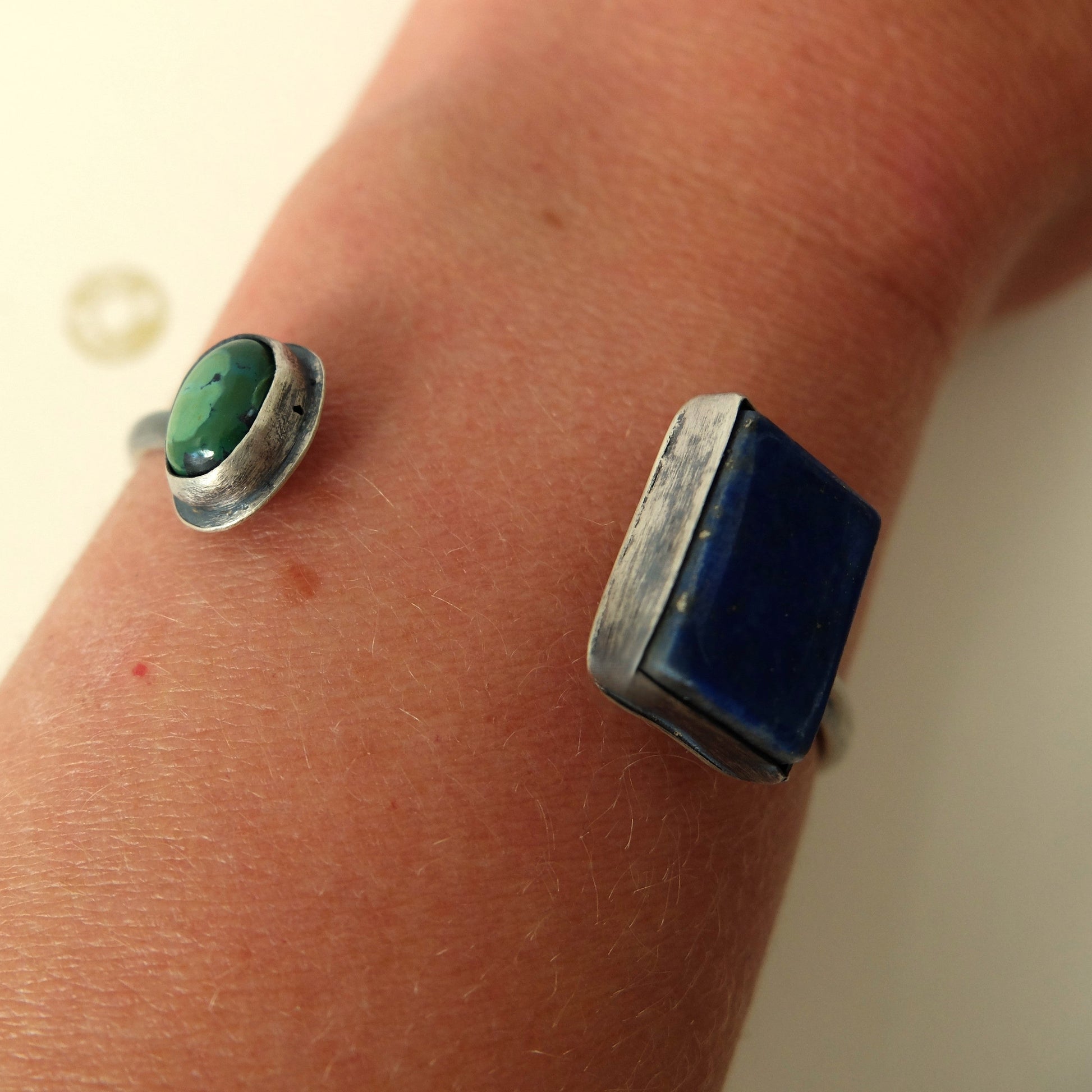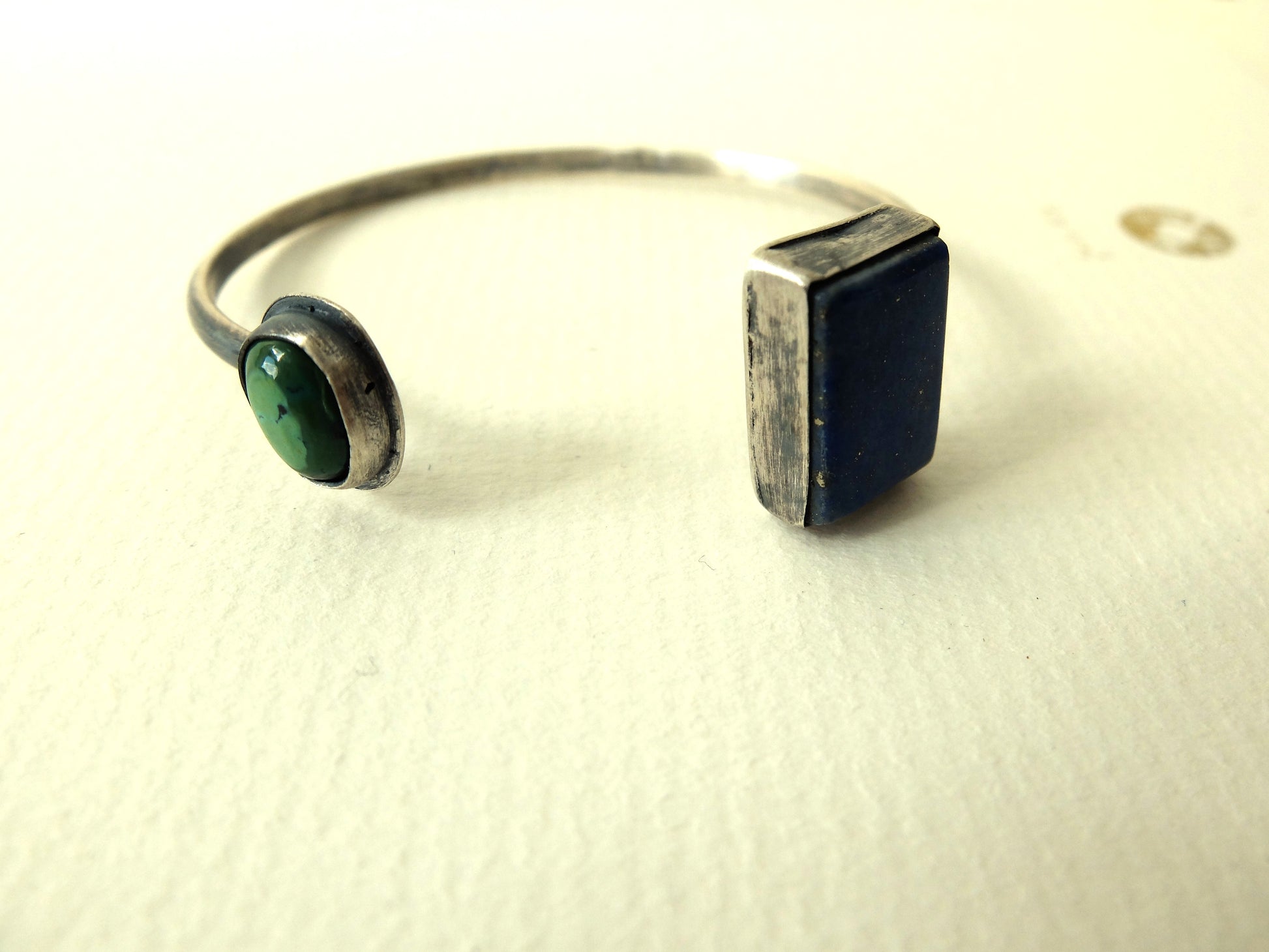 Agnes Lapis lazuli and Tibetan Turquoise Torque in Sterling Silver