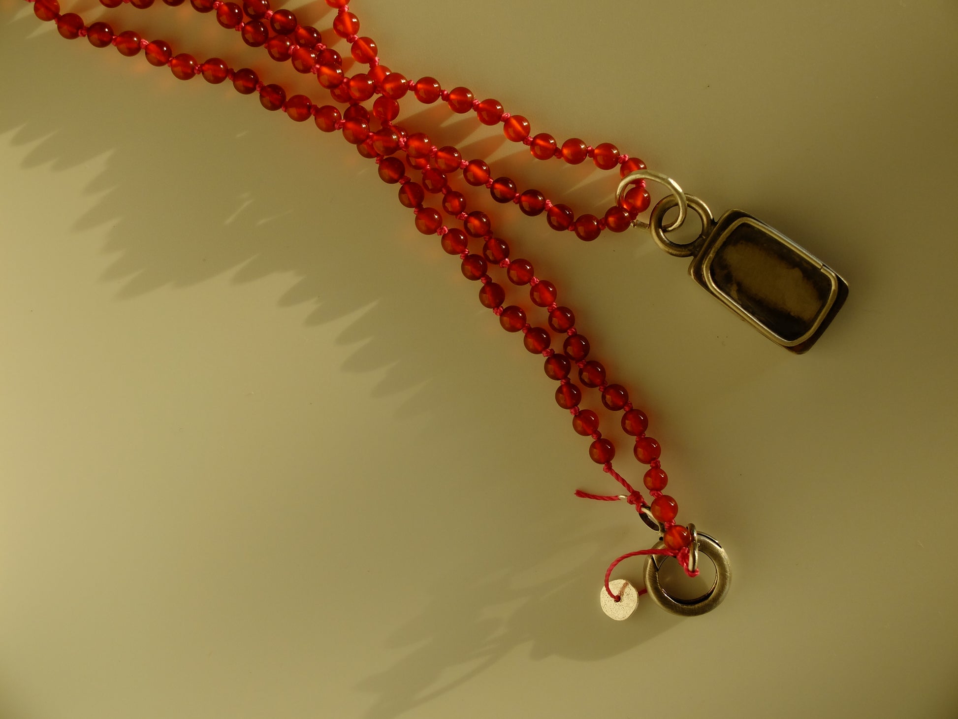 Esther Carnelian Bead Strand with Sterling Silver Pendant
