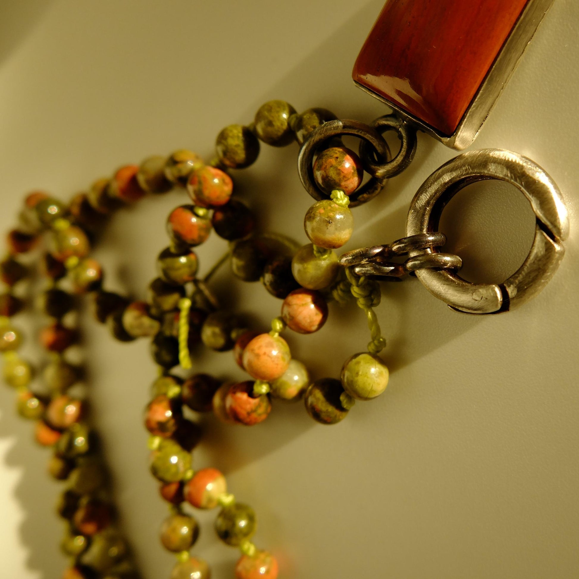Camile Red Jasper Silver Pendant with Unakite bead strand