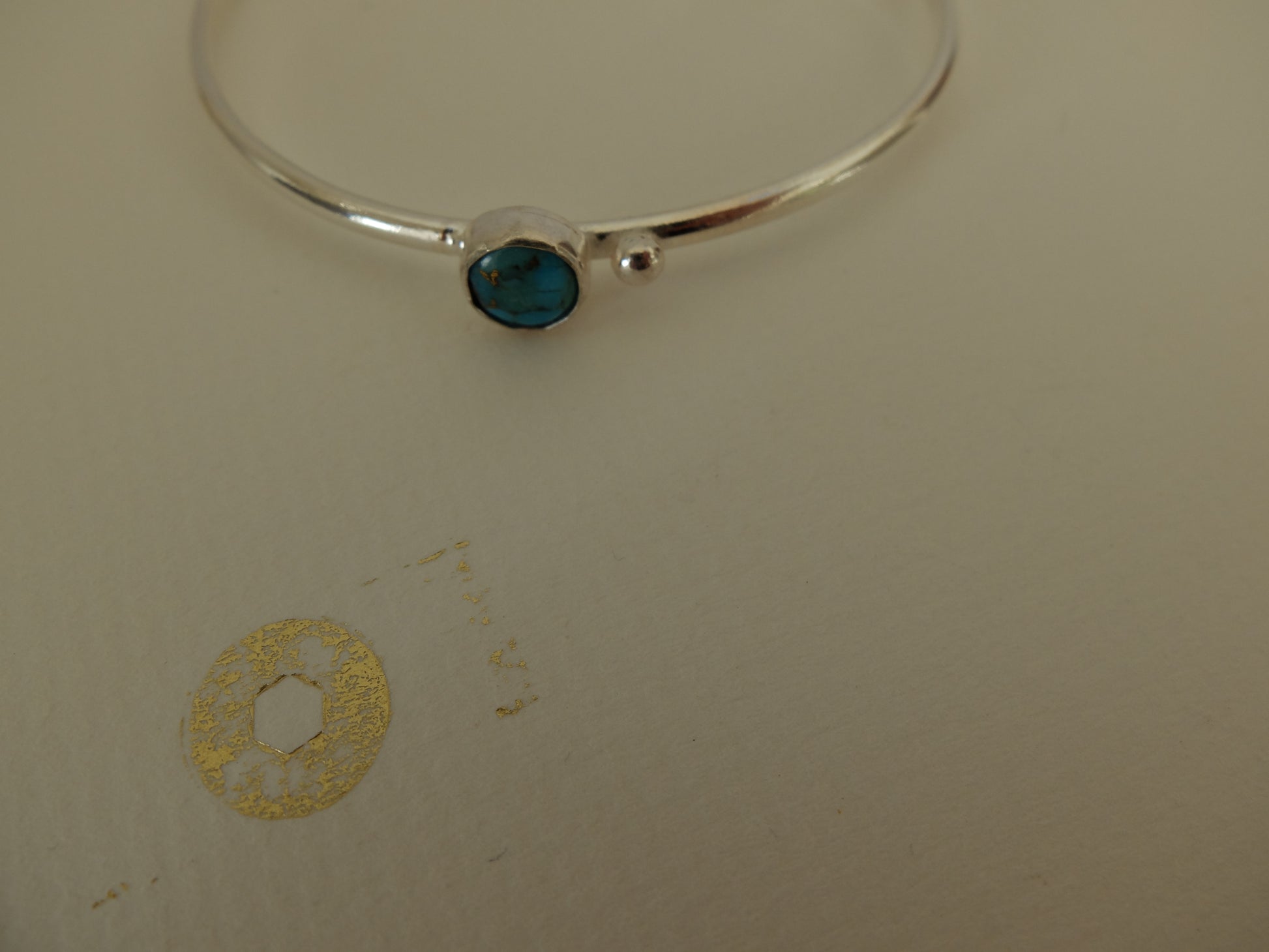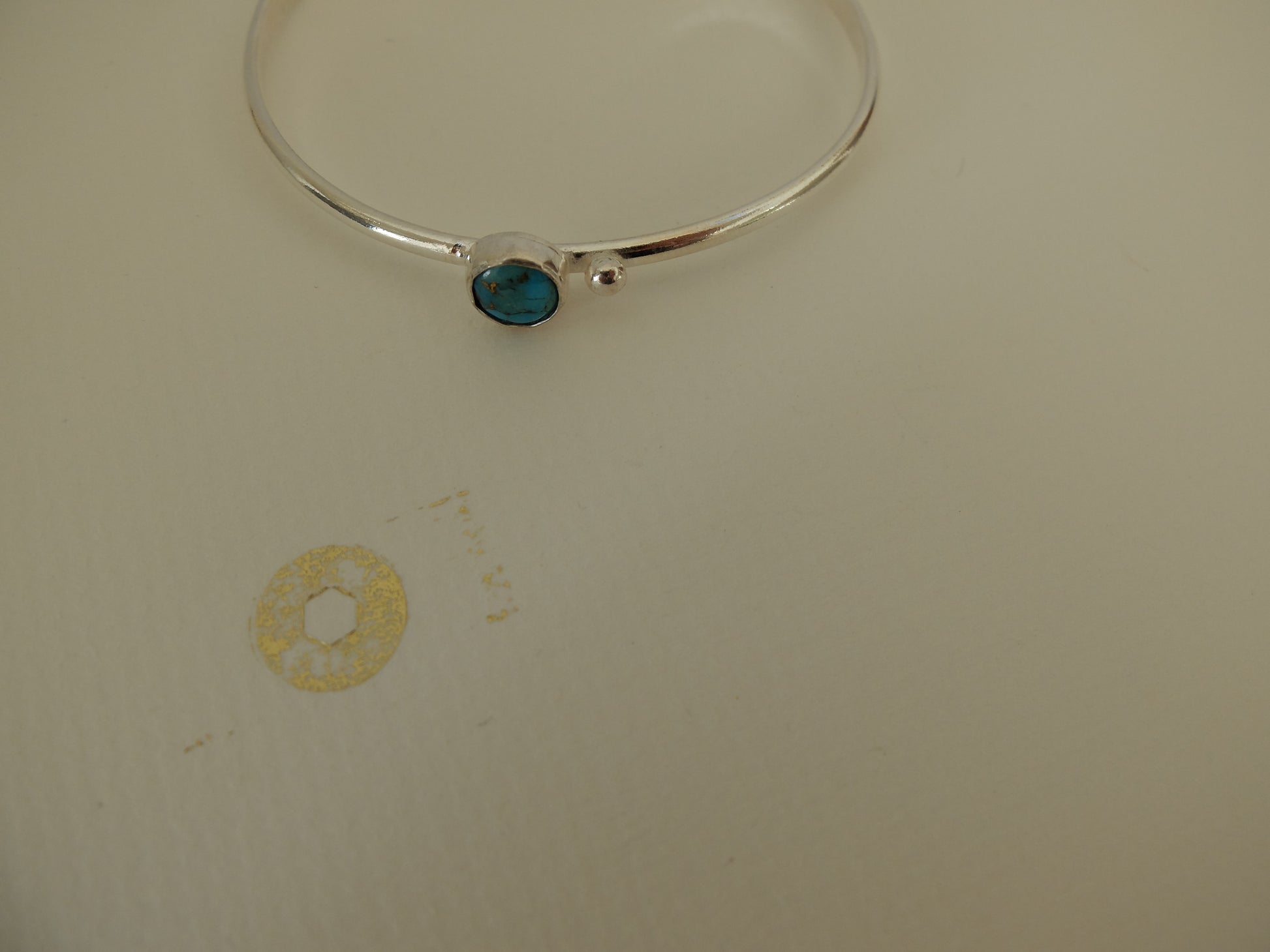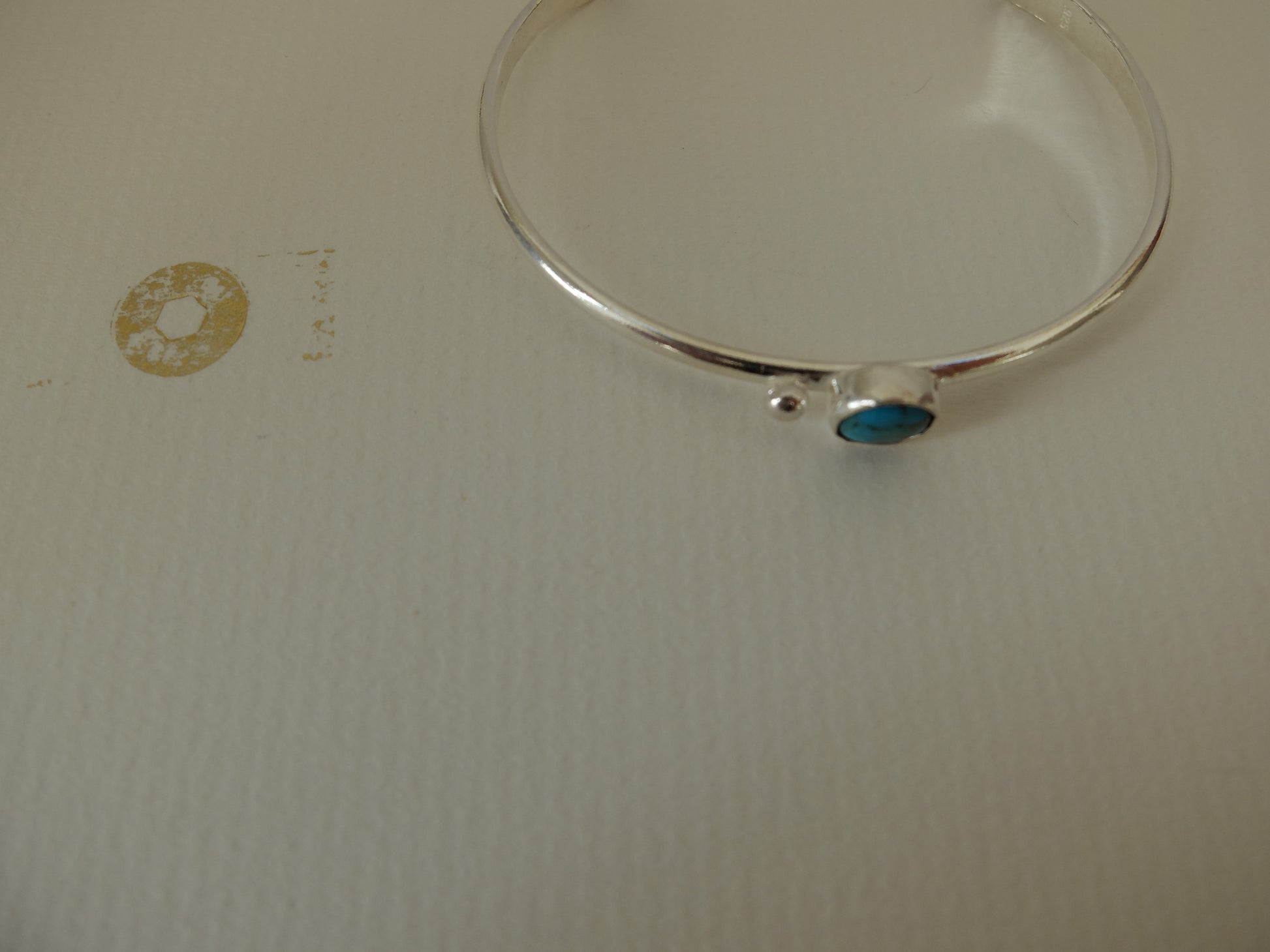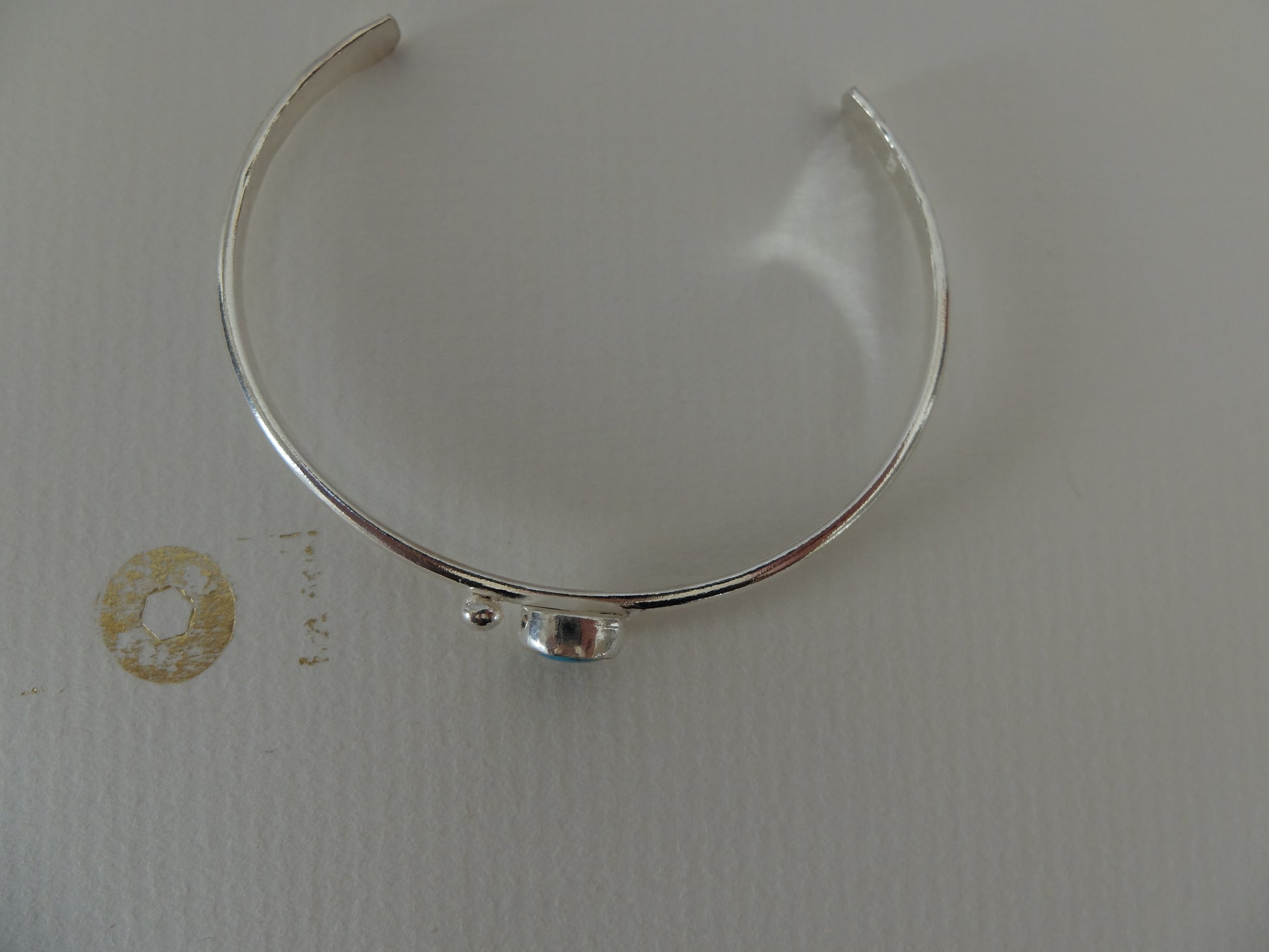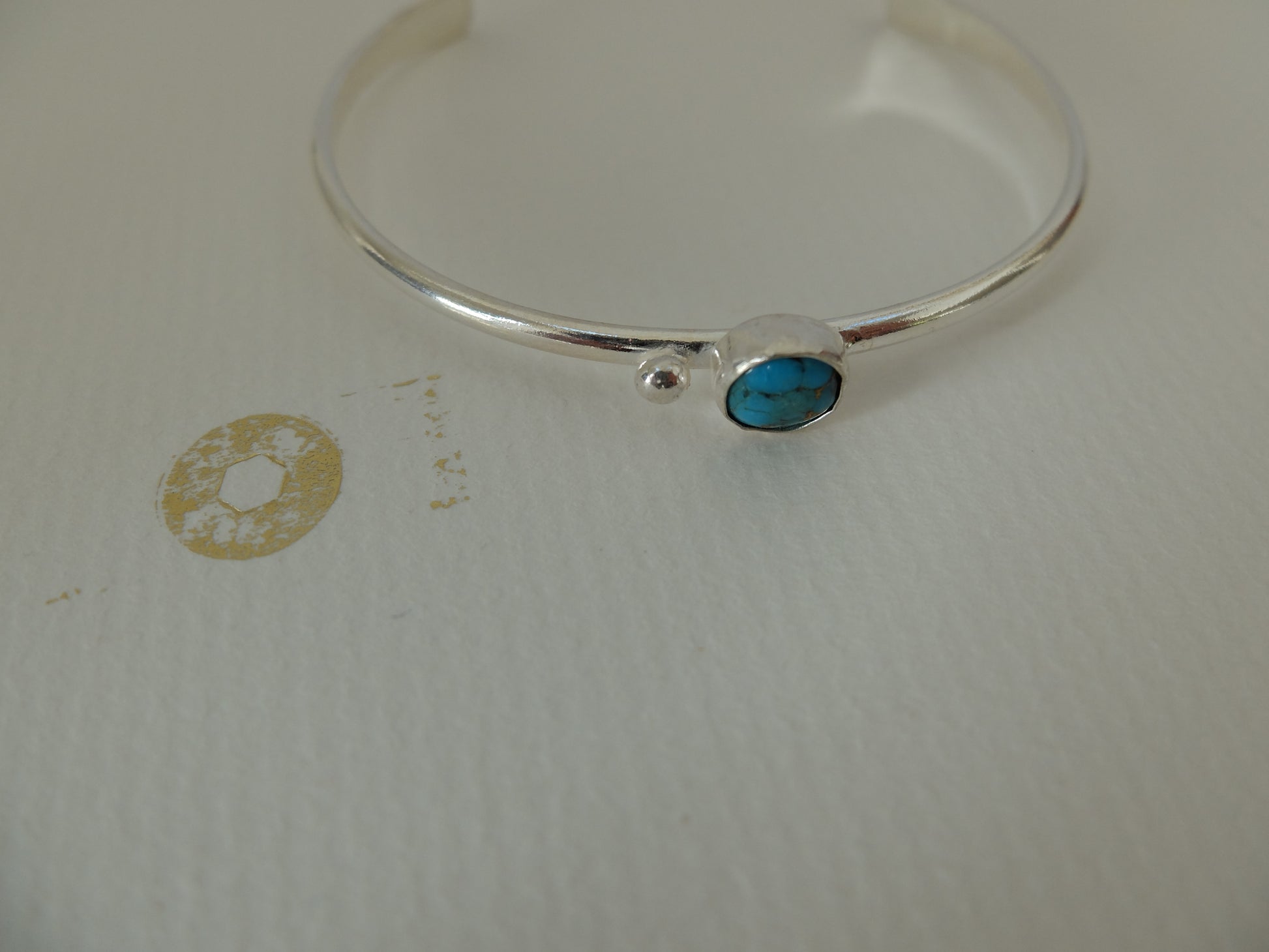Handmade Mohave Turquoise Sterling cuff bracelet; .25 inches.