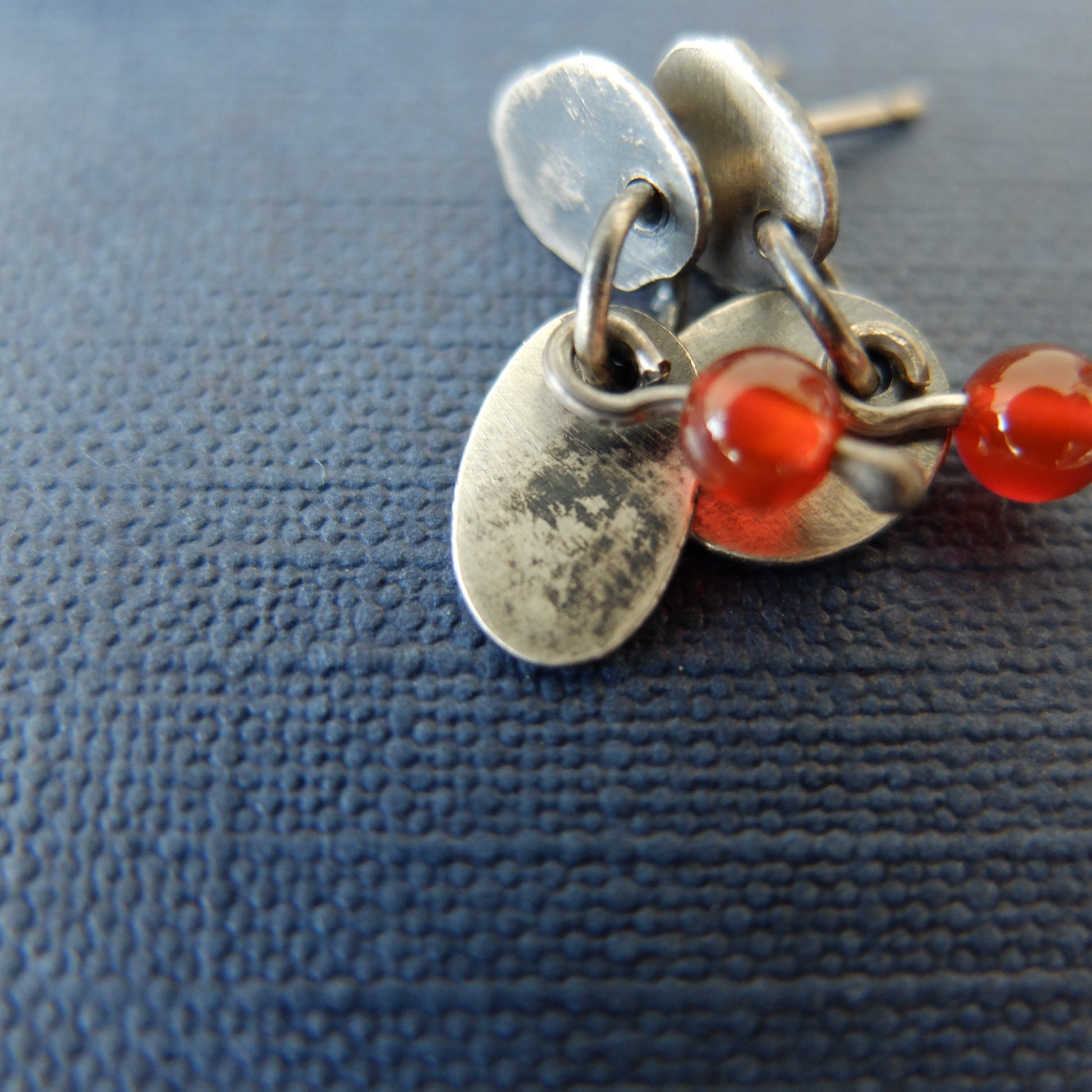 Handmade oxidised Carnelian stud earrings in Sterling silver