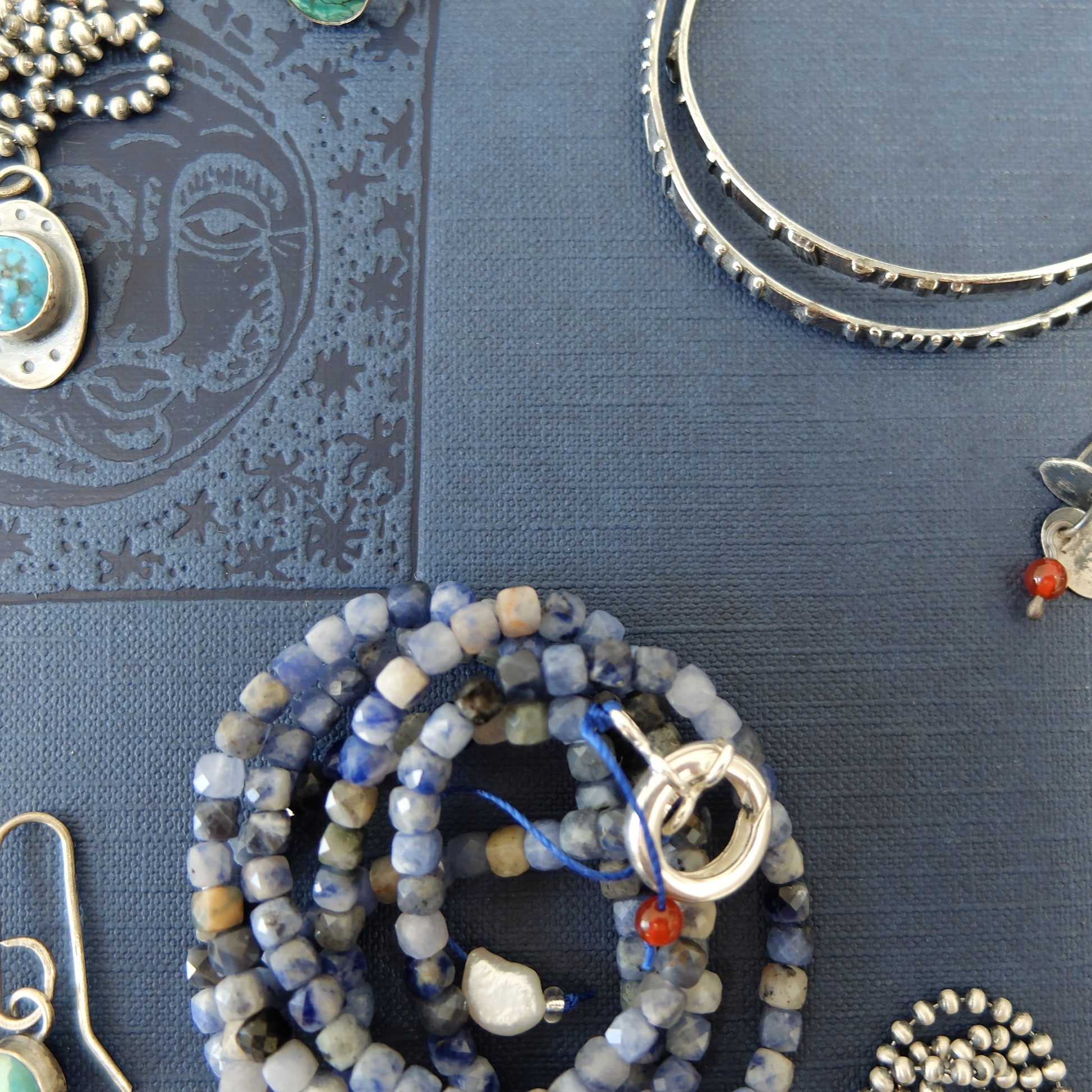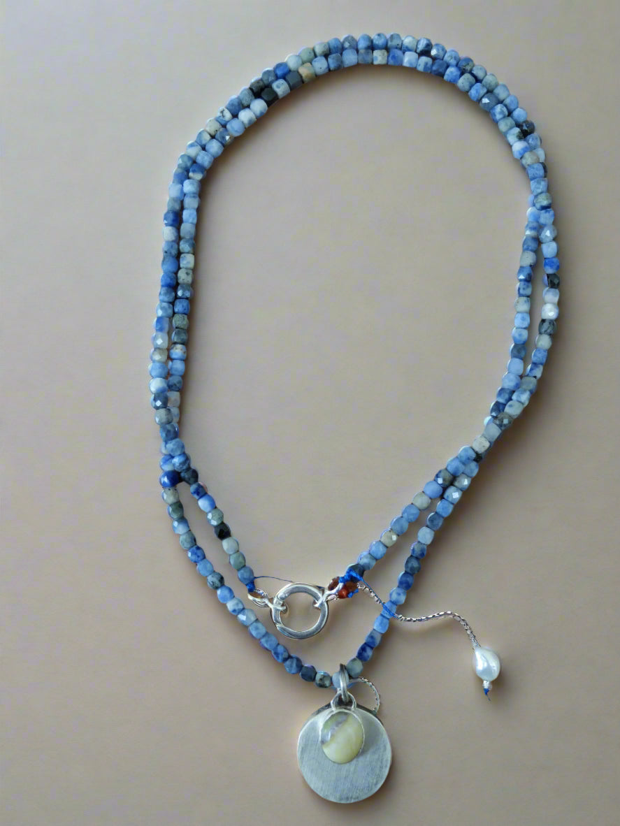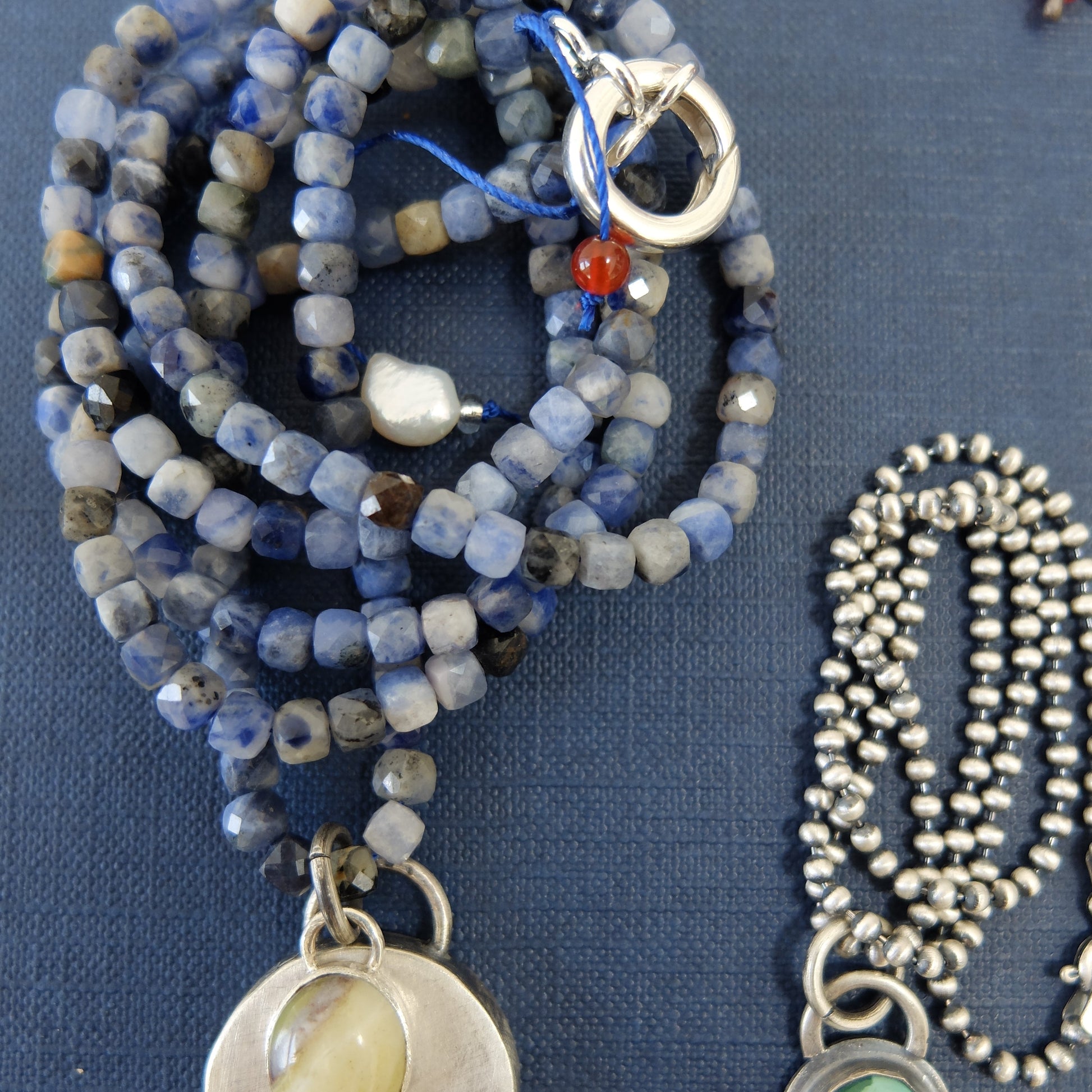 Helga Necklace in Sodalite Cube Beads with a Sterling Silver pendant