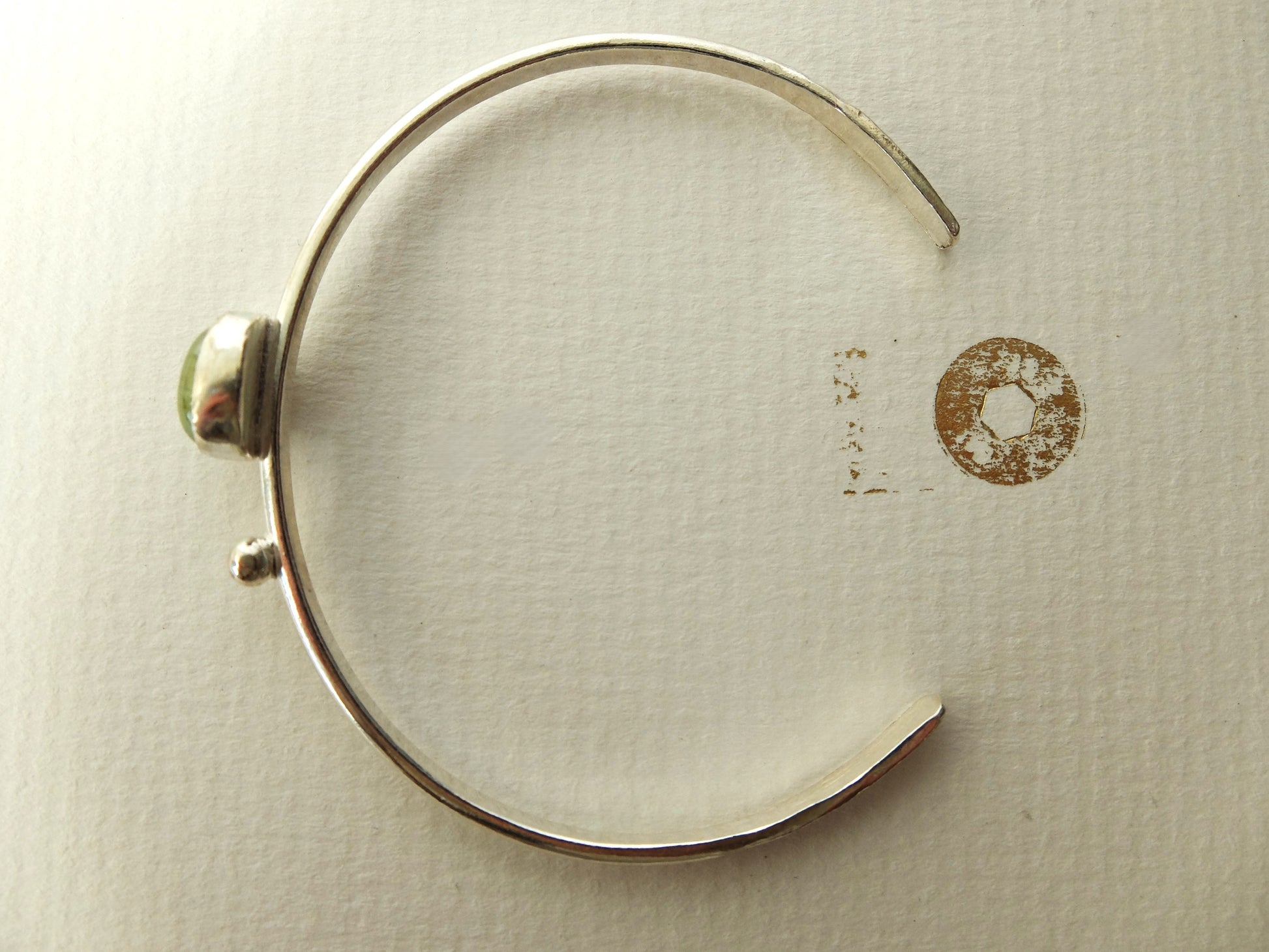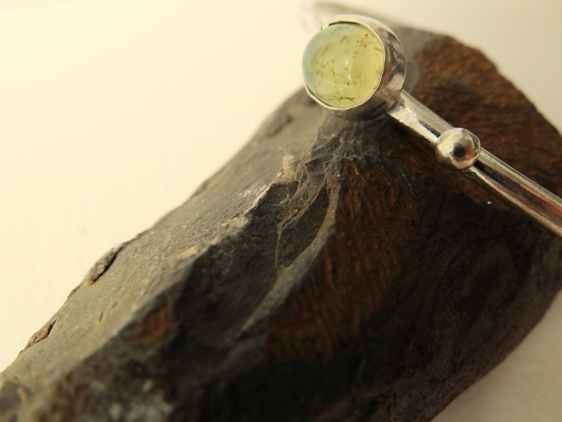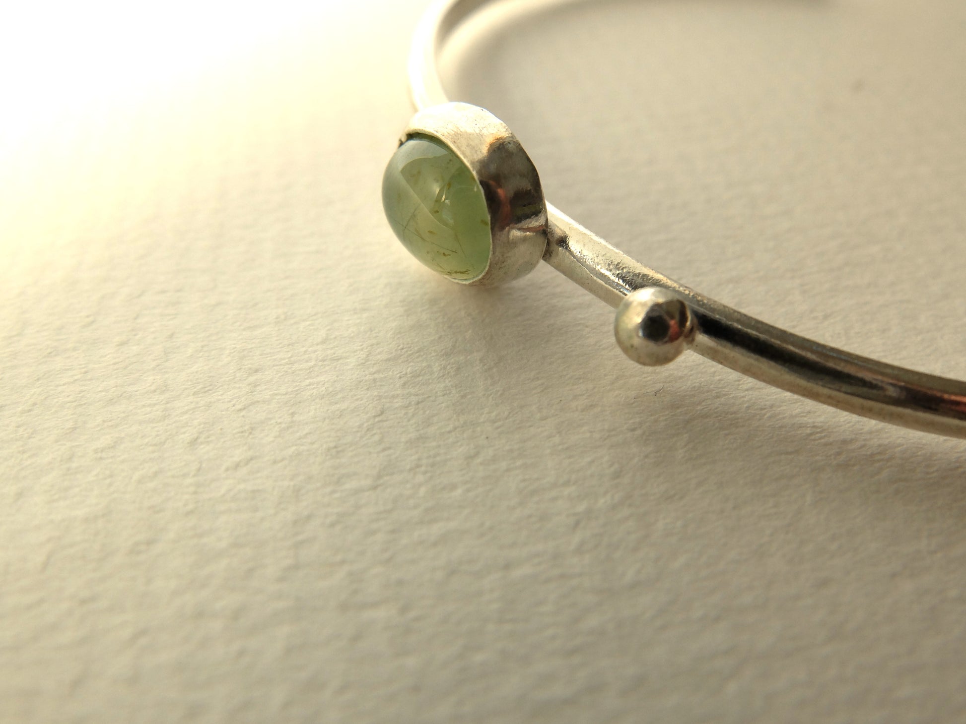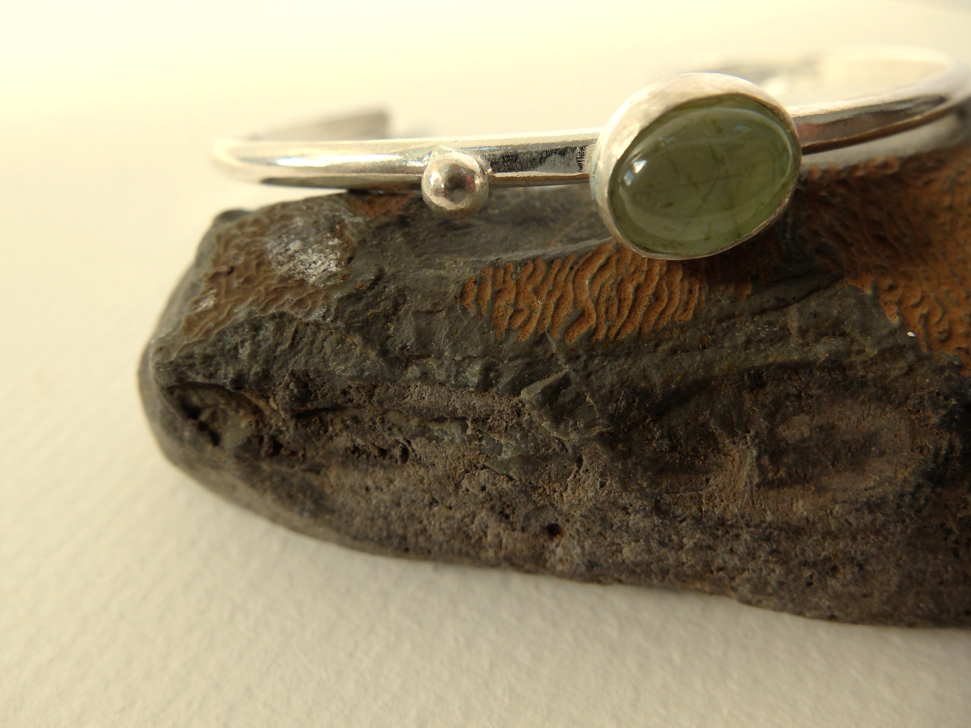 Handmade Prehnite stone Sterling cuff bracelet; .25 inches.