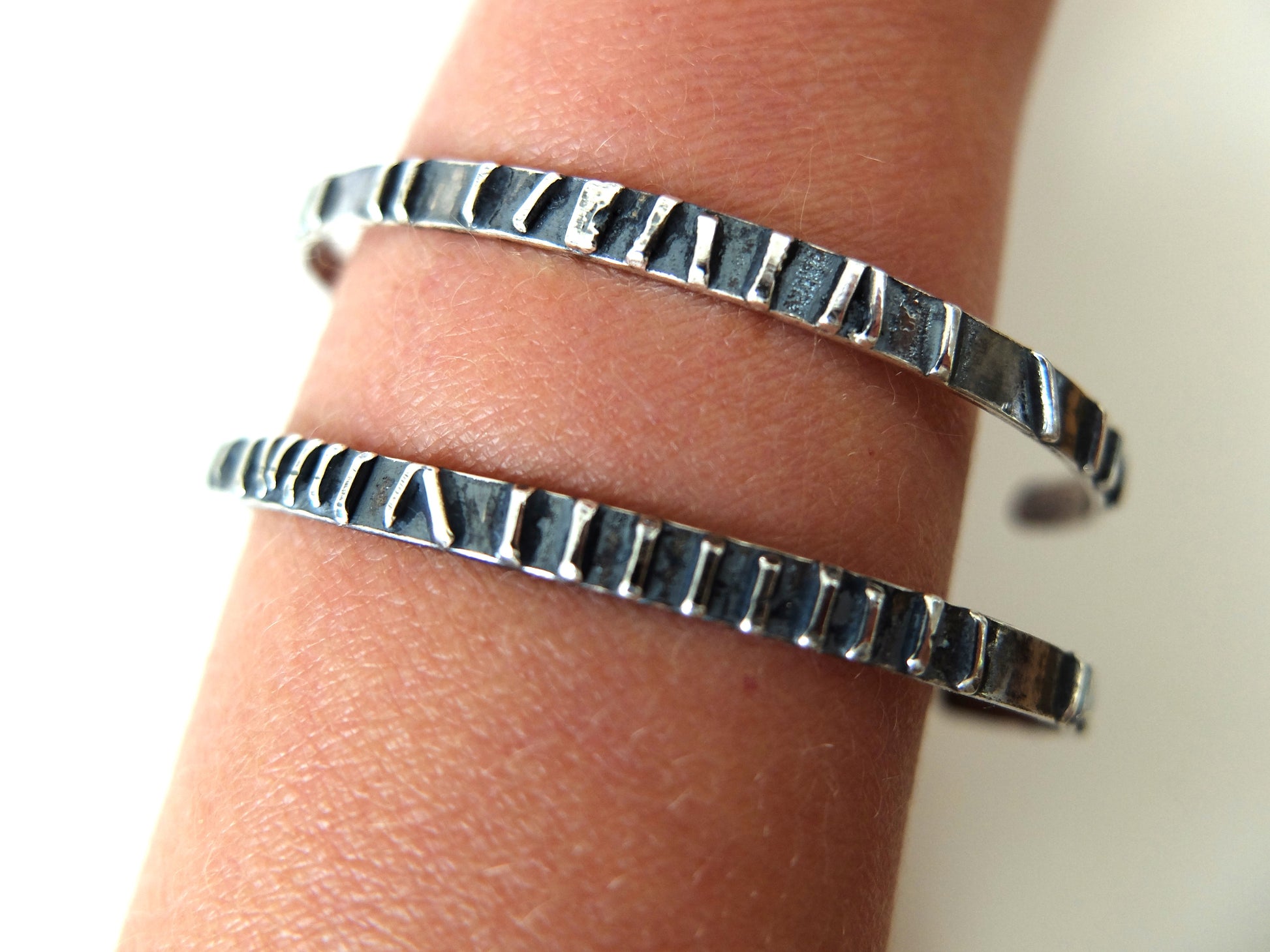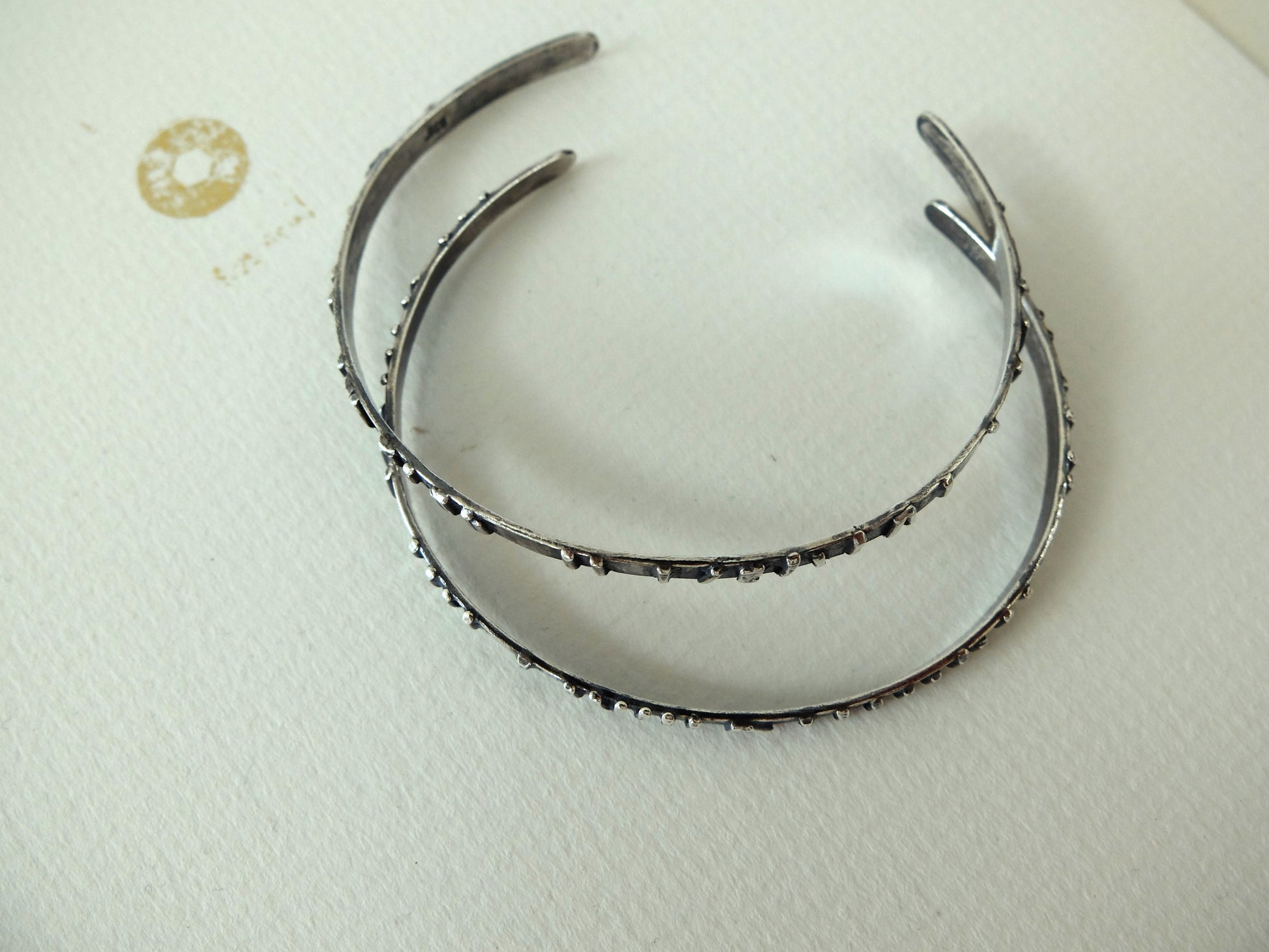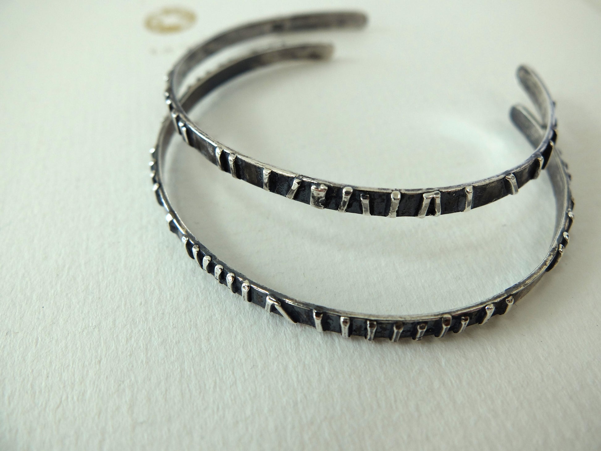 For this cuff Marta Anaia handmade every single detail by dropping small silver wire components to a band and hand forging it to create these cuffs bracelets. One item for listing (pictures are for listing purposes)