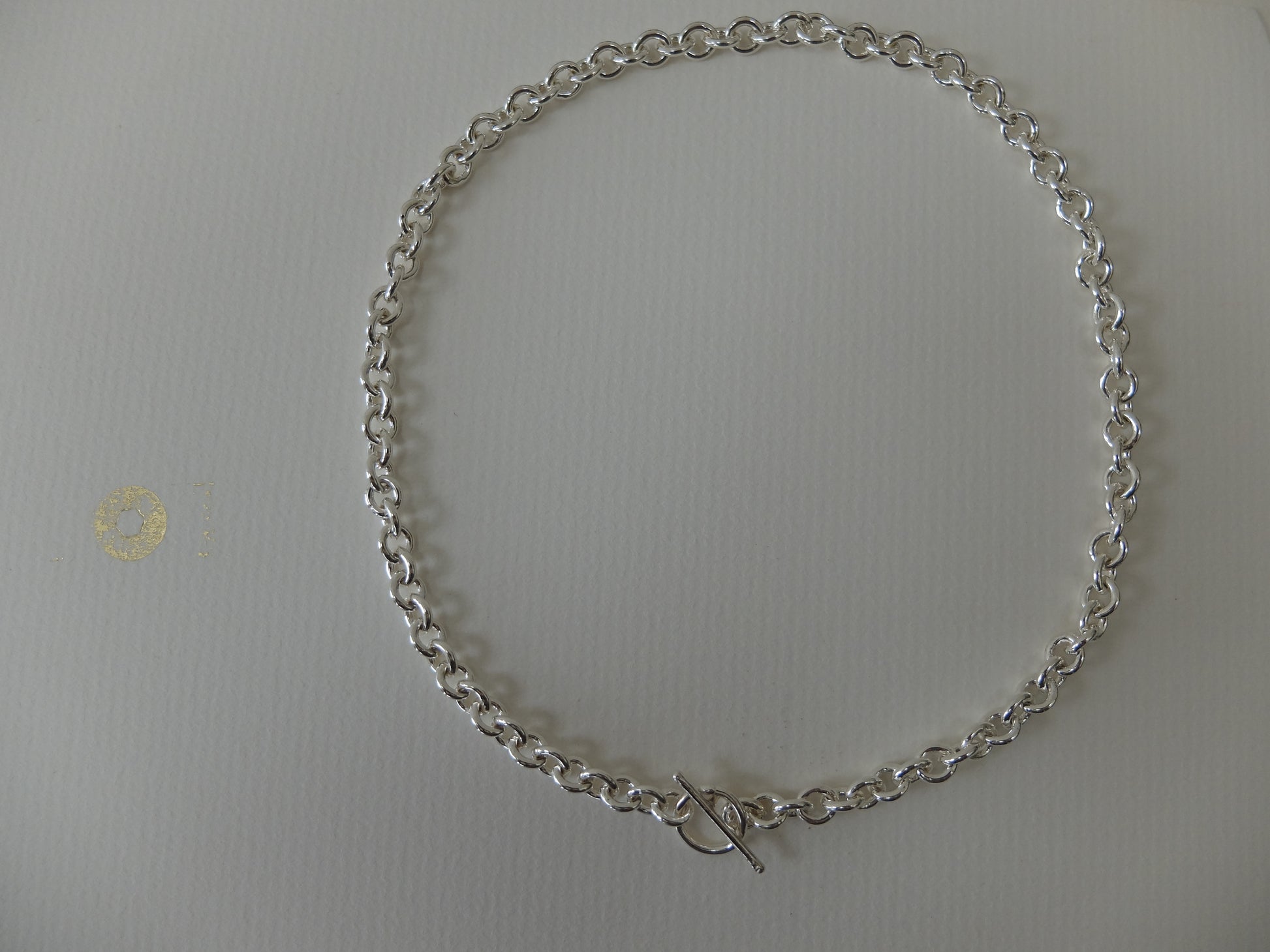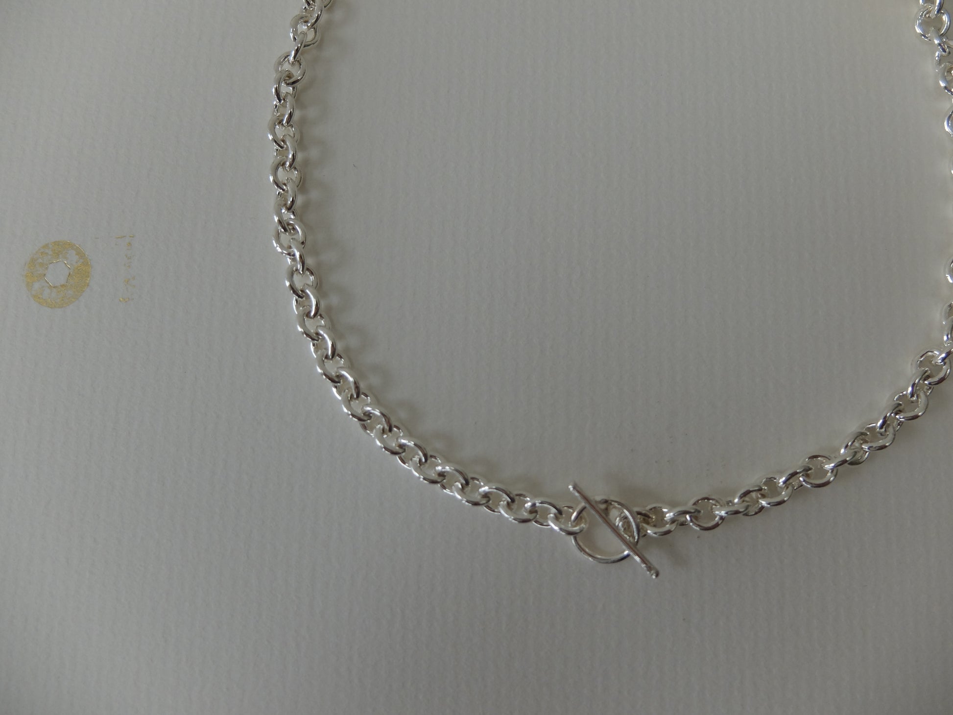 Sterling Silver large link chain necklace, 14 inches with toggle closure.