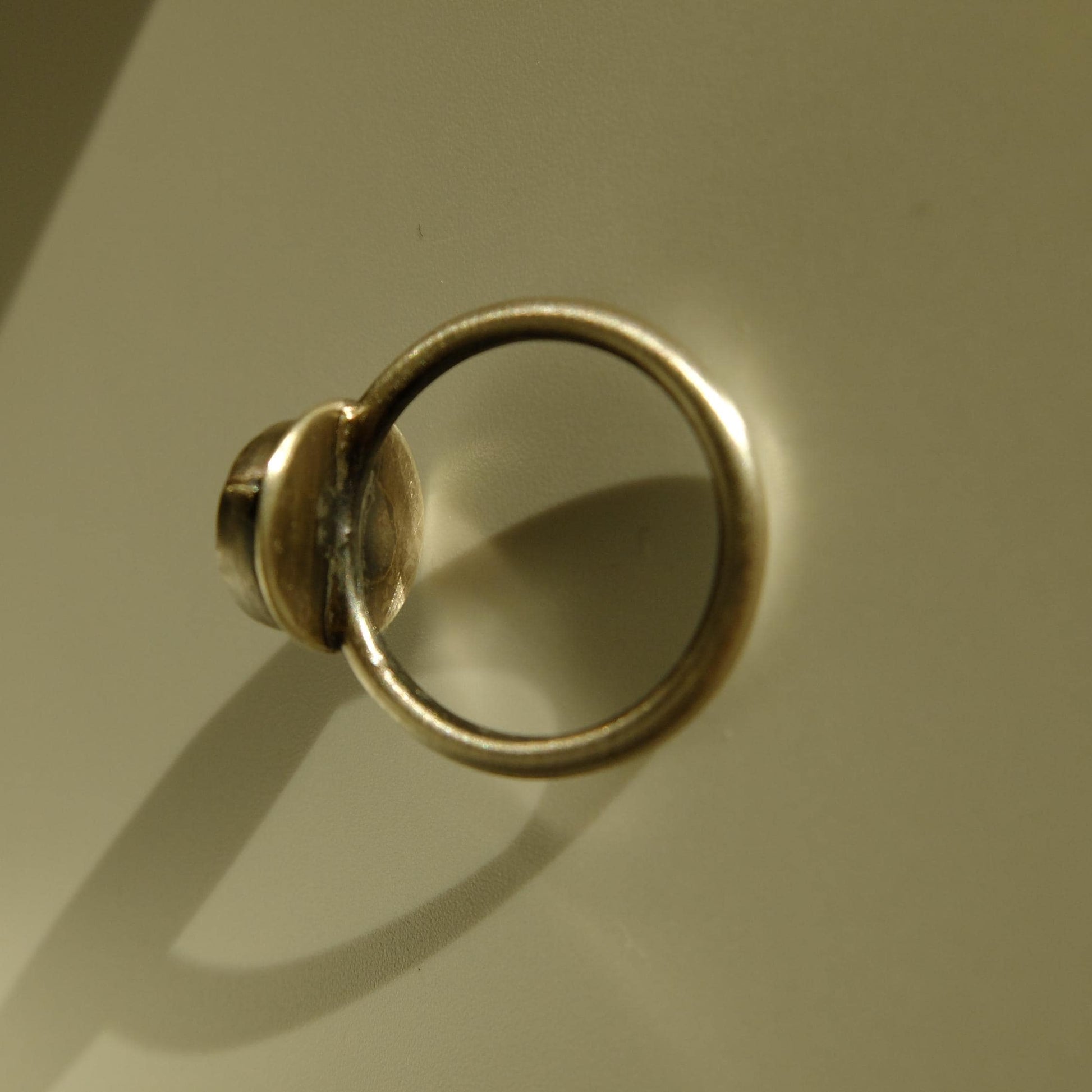 Elise Sterling Silver Ring with Rhodochrosite accent. Everything about this ring is elegant and slightly old world. Inspired by the Scottish cold pink sunsets, it features a oxidised matte finish and a bezel-set Rhodochrosite oval gemstone in a beautiful pink colour.